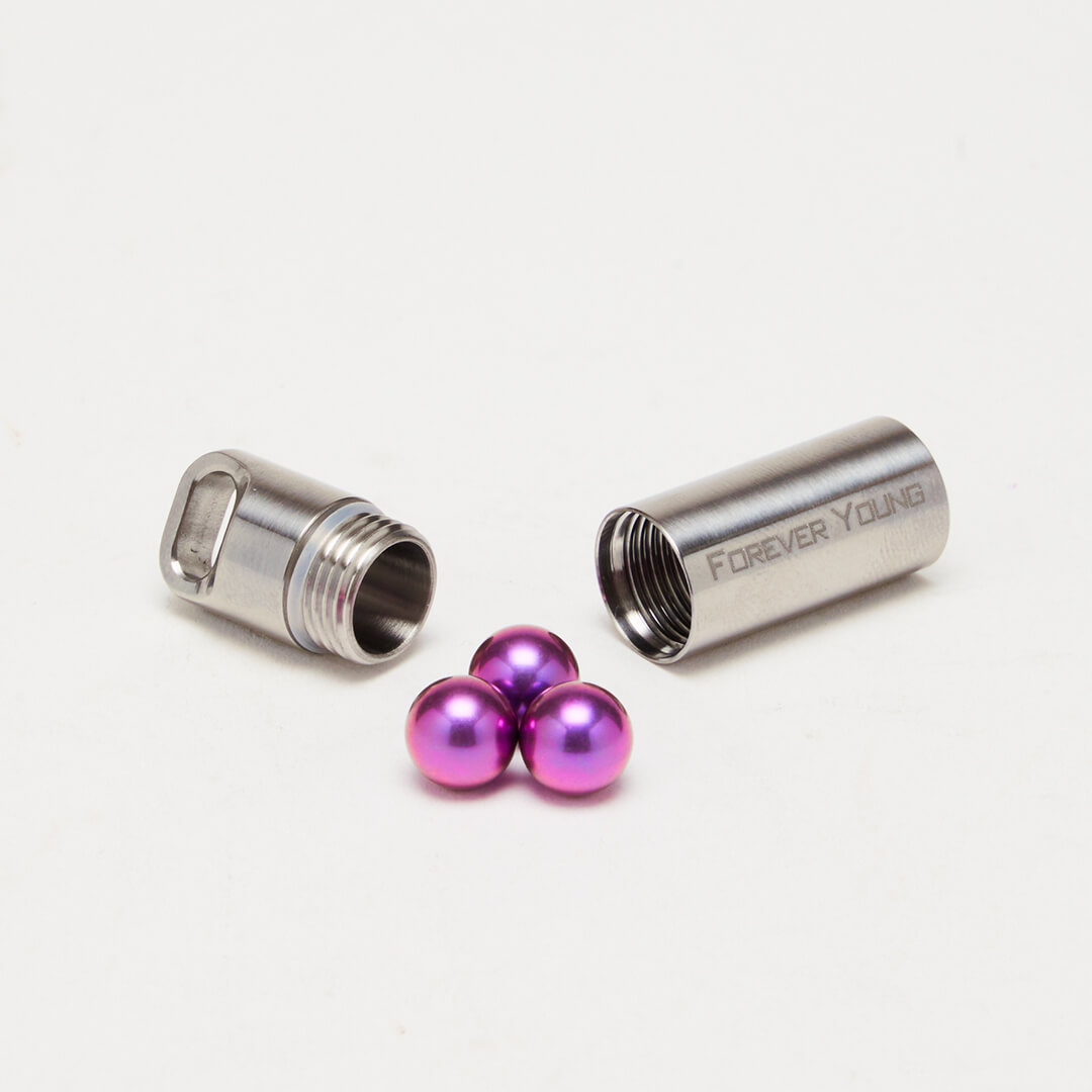 Verfeinert mit unserer fortschrittlichen Quantenenergie-Technologie, bietet die Kapsel mit der fein abgestimmten Forever Young Frequenz eine kontinuierliche Unterstützung und begleitet energetisch “still im Hintergrund”. Wie alle unsere Kapseln Petite enthält sie drei mit Quantenenergie versehene Titankugeln – über die Anzahl der in die Kapsel gefüllten Kugeln können Sie die Intensität des Energieniveaus dem persönlichen Bedürfnis entsprechend anpassen.